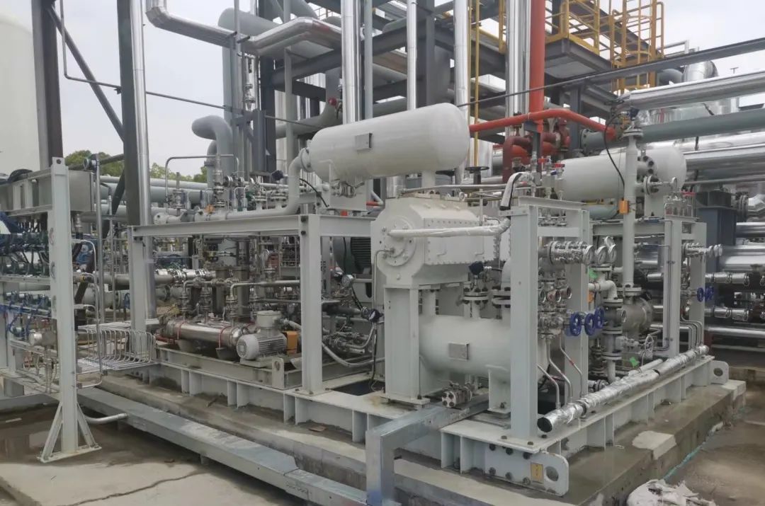 在石化行業(yè)的氫回收應(yīng)用案例更是不勝枚舉,圖中為應(yīng)用于中化集團(tuán)的含氫氣化工尾氣回收裝置中的解析氣壓縮機(jī)