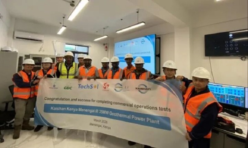 3月5日,開山集團(tuán)股份有限公司在肯尼亞Menengai地?zé)釁^(qū)全資擁有并建設(shè)的第一座地?zé)犭娬荆↘K01——Kaishan Kenya 01電站)順利完成了從2月2日開始的為期30天穩(wěn)定性運(yùn)行測試,至此,該電站全部的獨(dú)立第三方見證測試均已完成,明天,獨(dú)立工程師將頒布證書并通知肯尼亞國家電網(wǎng)公司KPLC,宣告這座電站實(shí)現(xiàn)商業(yè)運(yùn)行(COD)。
